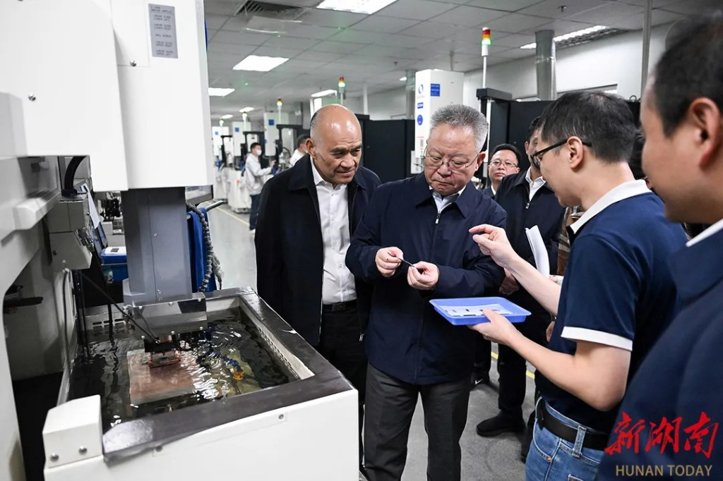 沈晓明来到韶能集团耒阳蔡伦纸品有限公司、湖南先导新材料科技有限公司、湖南明升新能源有限公司、衡南得意精密电子工业有限公司,了解企业发展、技术研发、市场开拓、上下游产业链衔接等情况。他指出,优化营商环境要在帮助企业把物流成本降下来、把下游企业招进来等方面下更大功夫,支持企业就地扩能升级。在湘南纺织产业基地,沈晓明听取园区规划和入园企业投产运营等情况介绍,并走进常宁市雅轩服装有限公司生产车间,了解企业发展、吸纳就业等情况,指出要立足区位、资源等优势,积极承接产业转移,不断发展壮大县域特色产业。每到一处,沈晓明都叮嘱企业负责人不断提高工艺水平和产品质量,绝不能以牺牲生态环境为代价,切实守牢生态环保和安全发展底线。