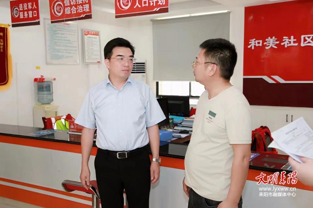 7月20日下午,衡阳市委副书记、耒阳市委书记赖馨正到耒阳市实验小学、灶市街街道天桥社区、市政务服务中心、五一路与蔡伦路十字路口、金山农贸市场暗访督查文明城市创建工作,现场交办问题,要求立即整改、举一反三,并慰问坚守在创建岗位的工作人员。他强调,要深入学习贯彻习近平总书记关于精神文明建设的重要论述,牢固树立以人民为中心的发展思想,坚定“不创则已、创则必优、创则必成”的信心和决心,咬定目标不松劲,一鼓作气强攻坚,竭尽全力、齐心协力把各项工作做扎实、做细致、做到位,确保创成省级文明城市。