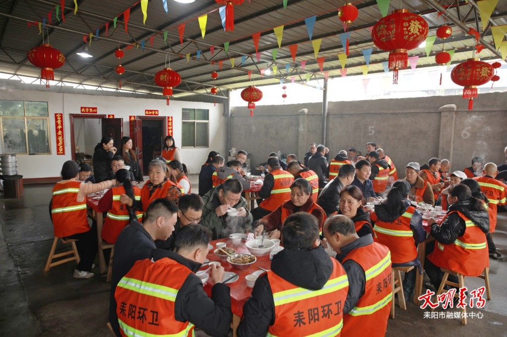 在市环卫所城西分所,张润槐慰问了环卫工人,并和他们一起吃团年饭。他说,越是节假日,你们越辛苦。希望大家继续发扬不怕苦、不怕累、不怕脏的精神,不断提高环卫保洁质量,一以贯之做好城市美化净化工作,共同把耒阳建设得越来越美好。
