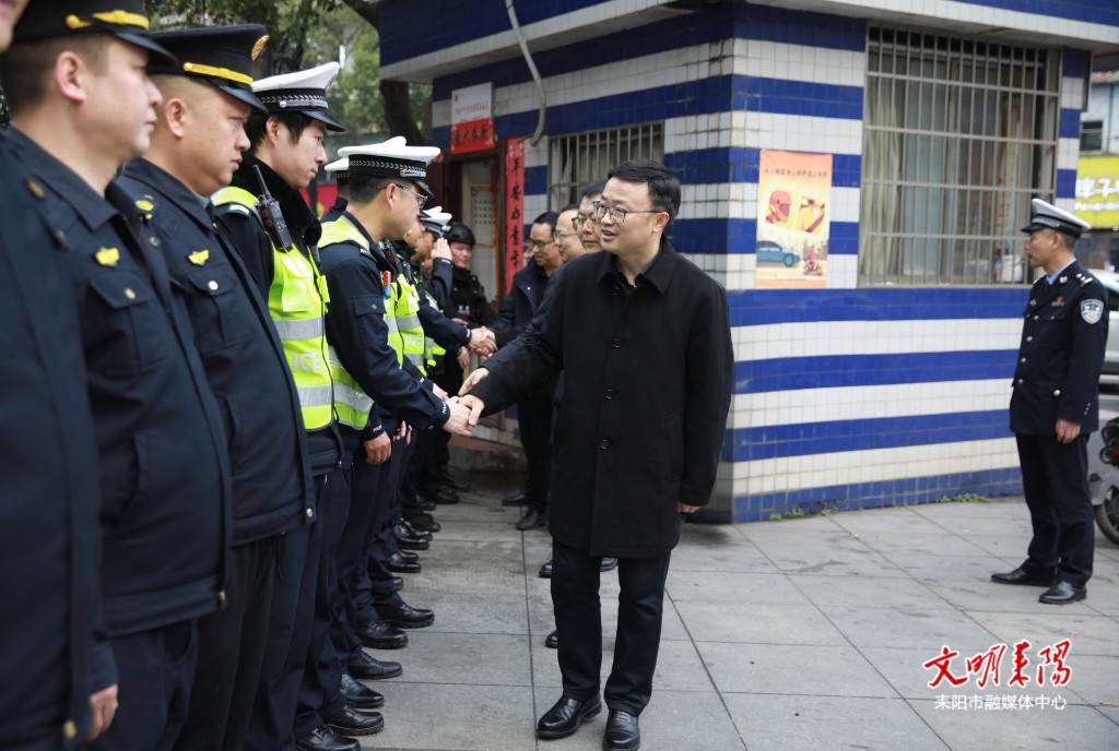 在五一路与蔡伦路交界路口,张润槐与公安民辅警、综合行政执法人员、志愿者一一握手。他说,过去一年,在大家的共同努力下,全市社会大局总体平安稳定,希望大家再接再厉、坚守岗位、履职尽责,全力做好保安全、保畅通等各项工作,让全市人民度过一个平安、欢乐、祥和的新春佳节。
