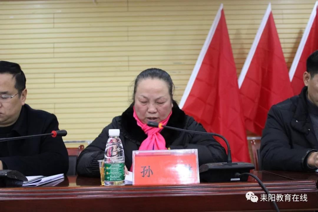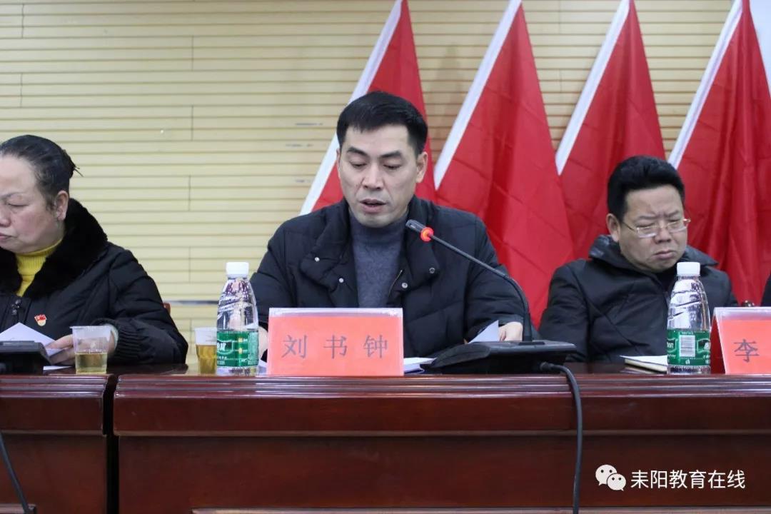会上,刘书钟作了题为《四轮驱动 全面发力 加快推动耒阳教育发展水平整体提升》的工作报告,报告对2018年教育工作进行了简要回顾,对2019年教育工作进行了安排部署。他指出,2018年是我市教育极不平凡极具挑战的一年,也是我市教育负重前行、加压奋进的一年,在迎接国省“两检”和“消超”的大背景下,全市教育系统凝心聚力,真抓实干,攻坚克难,较好地完成了各项目标任务,迈出了加快提质发展的坚实步伐。他指出,2019年耒阳教育重点要做好四个方面的工作:一是坚持安全至上,全力确保教育大局平稳,特别要确保今年秋季招生平稳有序,这是今年重中之重的工作;二是坚持质量为王,致力提升教育教学质量,各学校要进一步增强质量核心意识,理清思路,强化举措,狠抓教育教学质量提升;三是坚持硬件为要,积极促进教育发展进档提质,各学校要以迎接“义均”国检为契机,聚焦教育三要素,狠抓教育硬件建设,促进全市发展水平整体提升;四是坚持作风为本,全面提升教育治理能力,各学校要以党建为引领,以作风为根本,加强队伍建设,规范办学行为,改善教育民生,提升教育形象。
