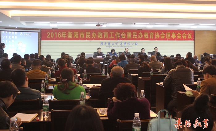 2016年3月17日上午,衡阳市民办教育工作会议暨民办教育协会理事会会议在我市师大附中耒阳分校召开。衡阳市教育局局长、党委书记周法清,我市副市长王卿出席会议并讲话,耒阳市教育局副局长张仁芳介绍了我市民办教育发展情况。衡阳市各县(市、区)教育局分管民办教育副局长、民管办主任、民办教育协会理事单位负责人参加会议。会议由衡阳市教育局民办教育科科长、民办教育协会秘书长唐仲和主持。会上,与会代表签订了《衡阳市民办学校(机构)规范办学行为承诺书》,并表决通过了衡阳市民办教育协会章程(修正案)及拟任衡阳市民办教育协会会长、副会长、秘书长、副秘书长、常务理事人员名单和理事单位名单。会议表彰了衡阳市局直民办学校2015年度年检评估优秀单位。
