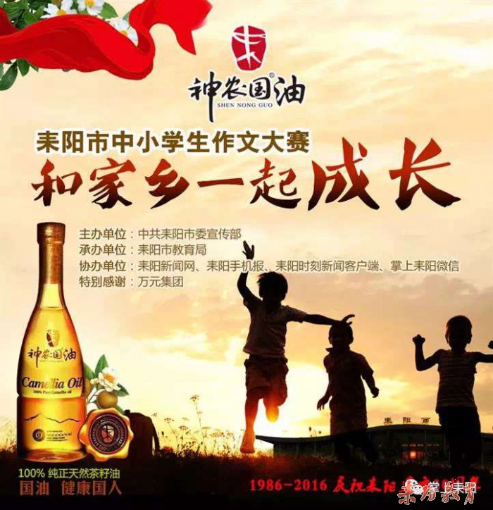 为隆重庆祝建市30周年,回顾30年来的发展历程,展示30年来的辉煌成就,讴歌30年来各行各业涌现的先进典型,培养广大中小学生了解家乡、热爱耒阳的良好道德情操,市委宣传部、市教育局联合举行耒阳市中小学生“我和家乡共成长”主题征文比赛活动。本次征文主题为“我和家乡共成长”,征文对象为全市小学(3—6年级)、初中、高中在校学生。征文内容主要通过讲述身边人、身边事及家乡的变化,展现我市建市30周年以来的变化和成就。本次活动共收到征文900余篇,经专家组评选,评出小学组:一等奖50名、二等奖100名、三等奖150名,优胜奖300名;初中组:一等奖30名、二等奖50名、三等奖100名,优胜奖80名;高中组(含中职学校):一等奖7名、二等奖11名、三等奖16名、优胜奖7名。优秀作品先后在耒阳新闻网、耒阳时刻新闻客户端、耒阳手机报、耒阳教育在线等媒体刊登。