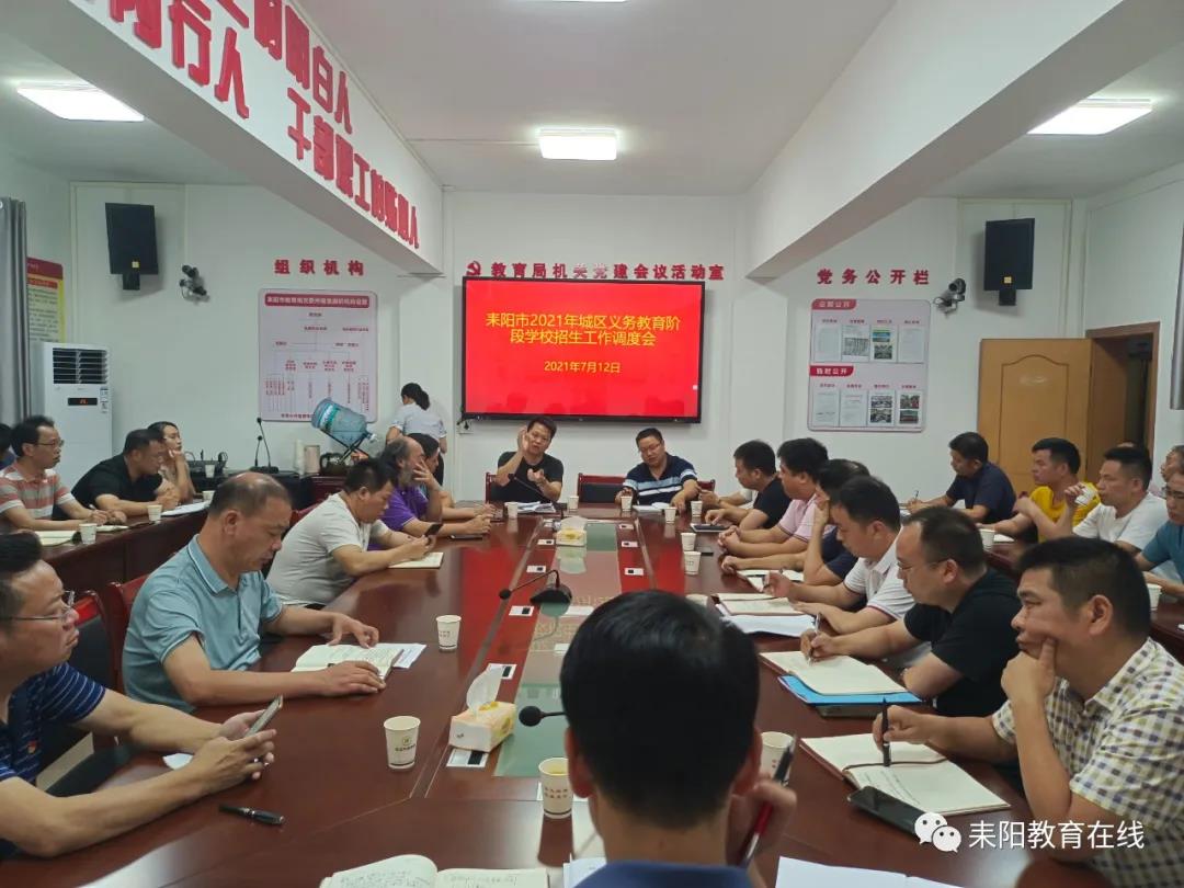 7月12日,耒阳市教育局召开2021年城区义务教育阶段学校招生工作调度会,就2021年秋季中小学招生入学工作进行了再安排、再部署、再调度。会议指出,义务教育招生工作涉及千家万户,事关群众切身利益。今年我市秋季义务教育招生工作面临入学资格审查任务繁重、甄别难度大、外界干扰多等一系列重难点问题,各学校要牢固树立招生大局意识,下定决心、顶住压力,坚决维护招生秩序,严格执行招生政策,切实规范办学行为,严明招生工作纪律,坚决守好政策底线和纪律红线,确保全市招生工作平稳有序进行。会议解读了今年中小学招生入学政策,并发出了史上最严招生工作动员令:最高政治站位、最大宣传攻势、最细工作安排、最深情感对待、最实措施组织、最严作风处置。“把每一个学生都安排进教室读书”是我市今年秋季招生入学工作的共同目标。会议要求,教育系统上下要以最高的政治站位、最深的思想认识,切实增强义务教育招生入学工作的责任感和使命感;要展开最大宣传攻势,广泛通过媒体宣传造势、网上宣传解读、“一对一、面对面”等手段,对我市招生政策进行全方位宣传和解读;要落实最细工作安排,从“生源来处”到“学生去处”,各学校要形成并落实详实名单及方案,确保“不空一位、不落一人”;要以最深情感对待,以高度的幸福感和压力感,强化担当意识,认真履职尽责,确保工作实效;要以最实措施保障,加强组织领导,建立紧急预案,强化监督检查力度,加强宣传引导,及时消除影响招生秩序和社会稳定的隐患苗头;要以最严作风处置,严格遵守各项工作纪律,重点治理超计划招生、跨片区招生、掐尖招生等违规行为,对不遵守招生纪律,造成不良影响或严重后果的学校,坚决做到发现一起、查处一起、纠正一起,确保今年秋季义务教育招生工作公平、公正、公开。