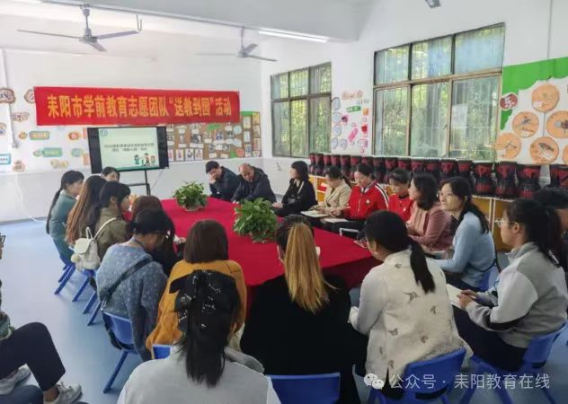10月25日,耒阳市学前教育志愿团队带着满满的爱心和热情,走进仁义镇中心幼儿园开展“送教到园”活动。教育局学前教育相关负责人参会。