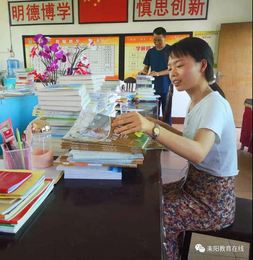 5月19日,常德职业技术学院大三学生刘桂华义务为水东小学整理“家校共读”课外图书