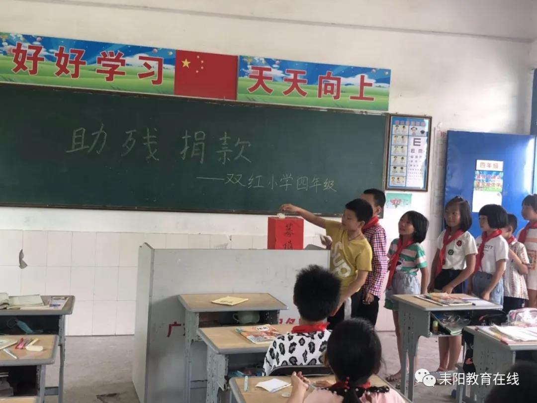 5月19日,三都镇双红小学了开展爱心助残募捐活动。