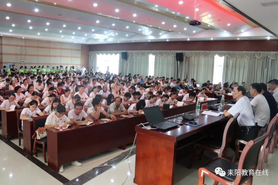 8月18日上午,耒阳国培计划2019送教下乡启动仪式在市中职学校6楼会议室隆重举行。市政府副市长郭兴中,局党委书记、局长刘书钟出席活动并讲话,仪式由局党委副书记、副局长曹寿昌主持,进修学校党支部书记、校长曾华,湖南幼儿师范专科学院专家分别在主席台 就坐 ,全市300多名中小学乡村骨干教师参加了启动仪式。