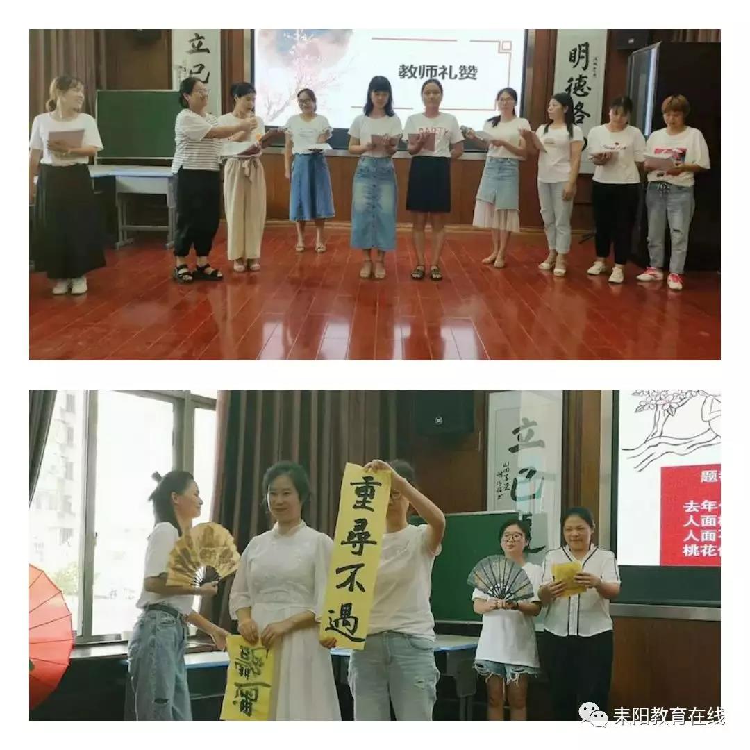 二班的老师们不但可以靠颜值博取大家的眼球,还能靠才华吸引大家的注意力。每组都精心准备了诗词朗诵,现场活动形式多样,那一刻,我们都目不转睛,聚精会神的盯着,生怕错过每一个瞬间。