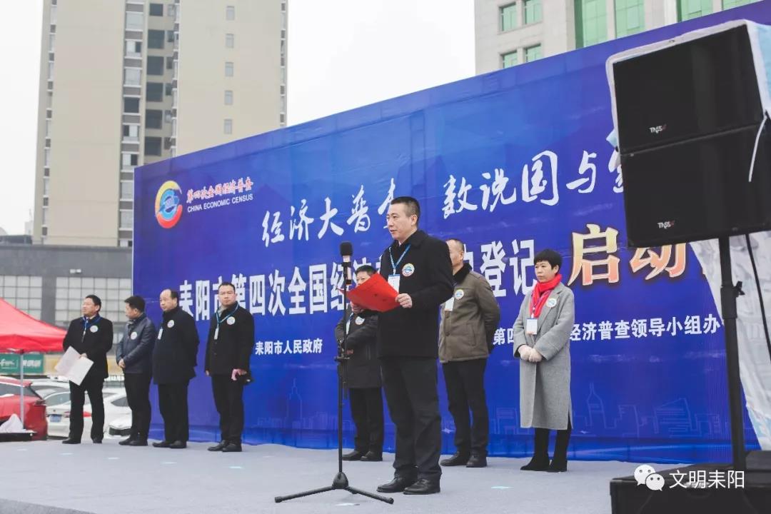 衡阳市政协副主席、统计局局长陈淼宣布我市第四次全国经济普查入户登记启动开始。即日起,普查员将手持移动数据采集终端入户开展经济普查登记和抽样调查工作。