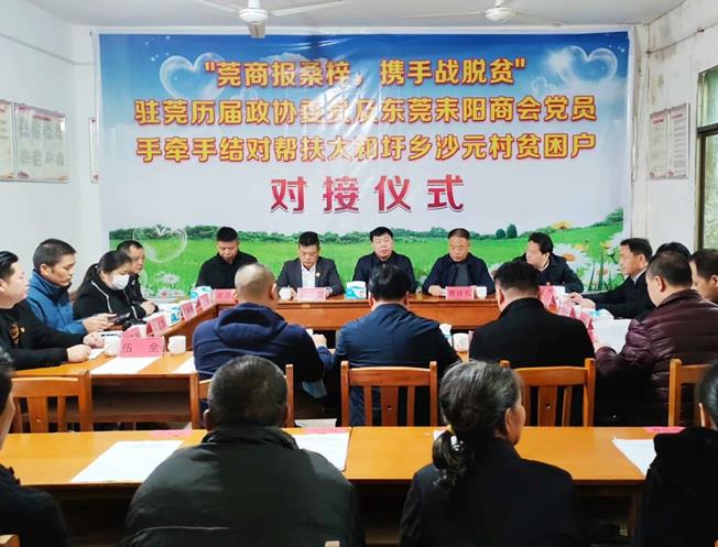 4月3日,驻莞历届政协委员及东莞耒阳商会党员手牵手结对帮扶对接活动在大和圩乡沙元村举行,市政协主席张东辉出席,市政协副主席曾祥礼主持对接仪式,市政协办、相关部门及乡镇负责同志,驻莞新老委员及商会爱心党员,沙元村驻村干部和深度贫困群众参加。