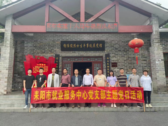 市就业服务中心支部书记结合耒阳党史以《学党史、悟初心;尽党责、担使命》为题给全体党员上了一堂生动的党课;同时该党支部组织全体党员前往谢维俊烈士生平事迹展览馆、邝鄘烈士陈列馆等红色教育基地开展主题党日活动。