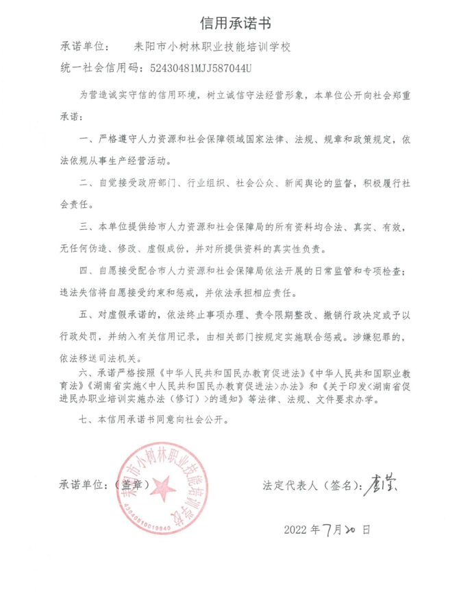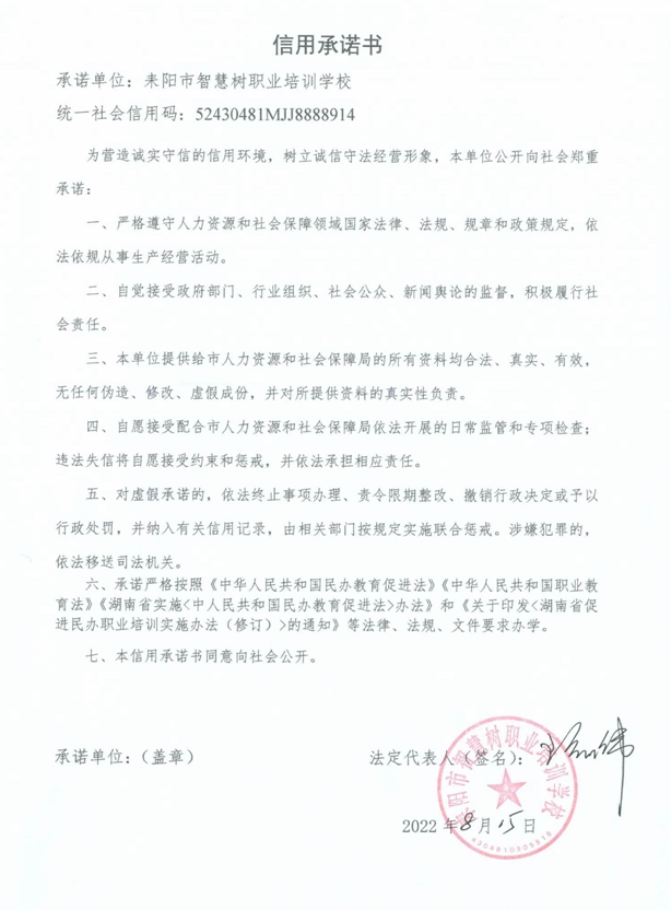 附件:耒阳市智慧树职业培训学校等3个民办职业技能培训机构承诺书及变更办学工种情况表