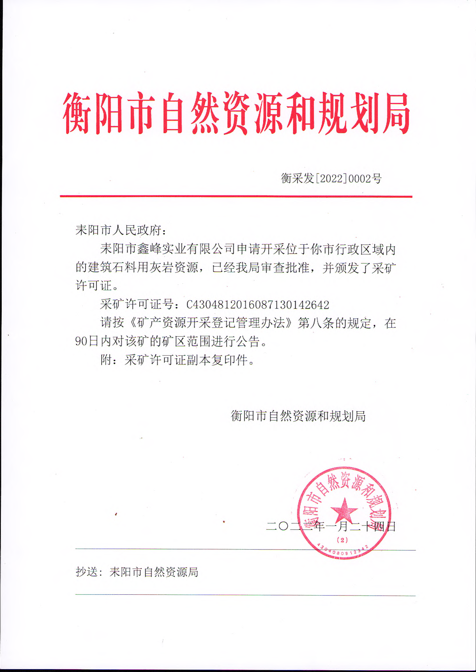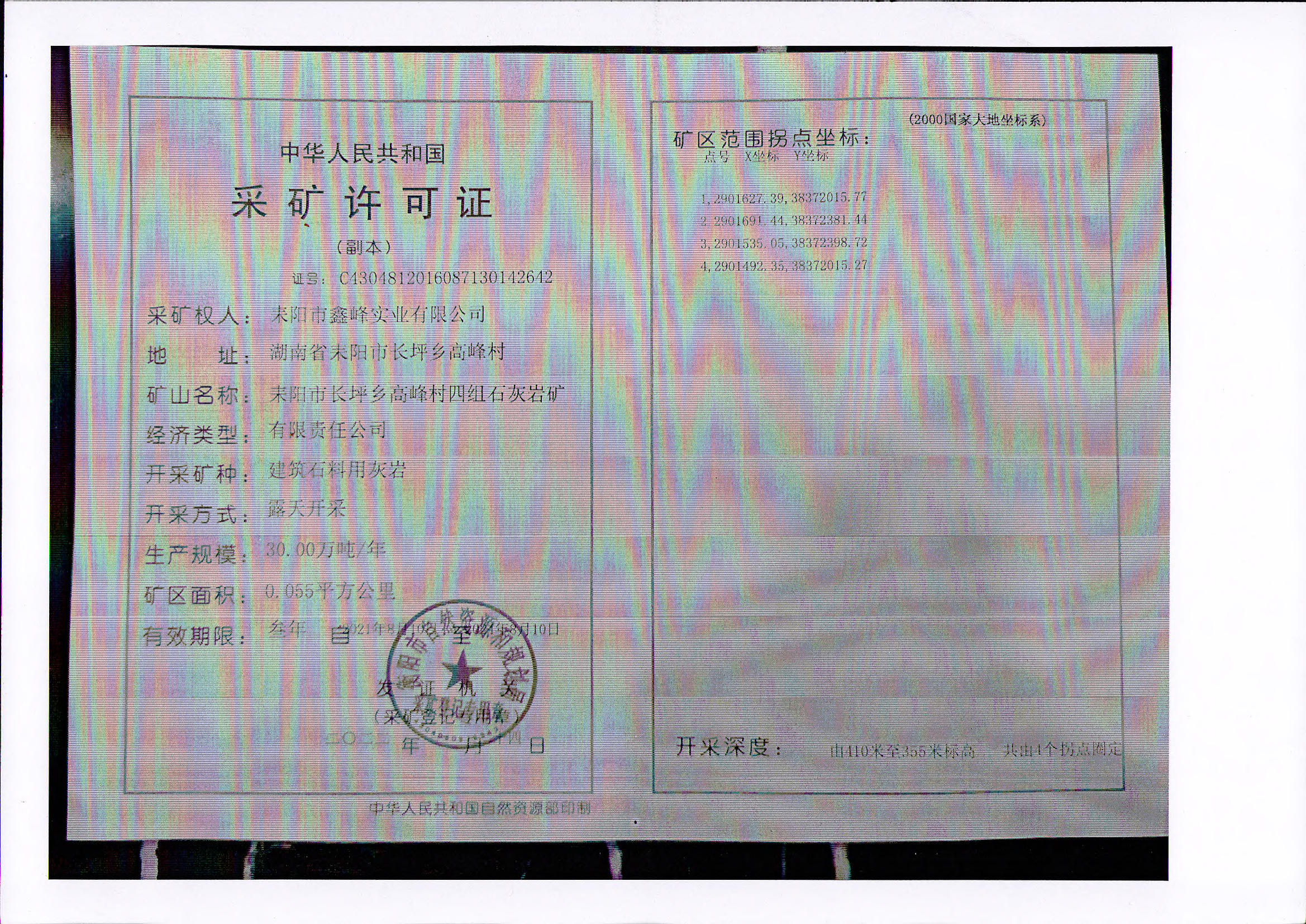 矿区范围公告(鑫峰实业)