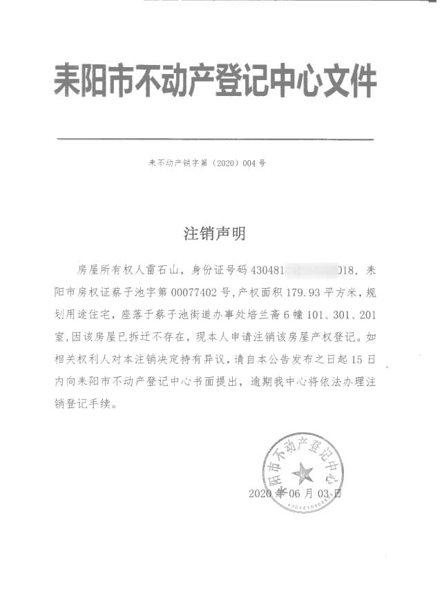 注销声明(雷石山)