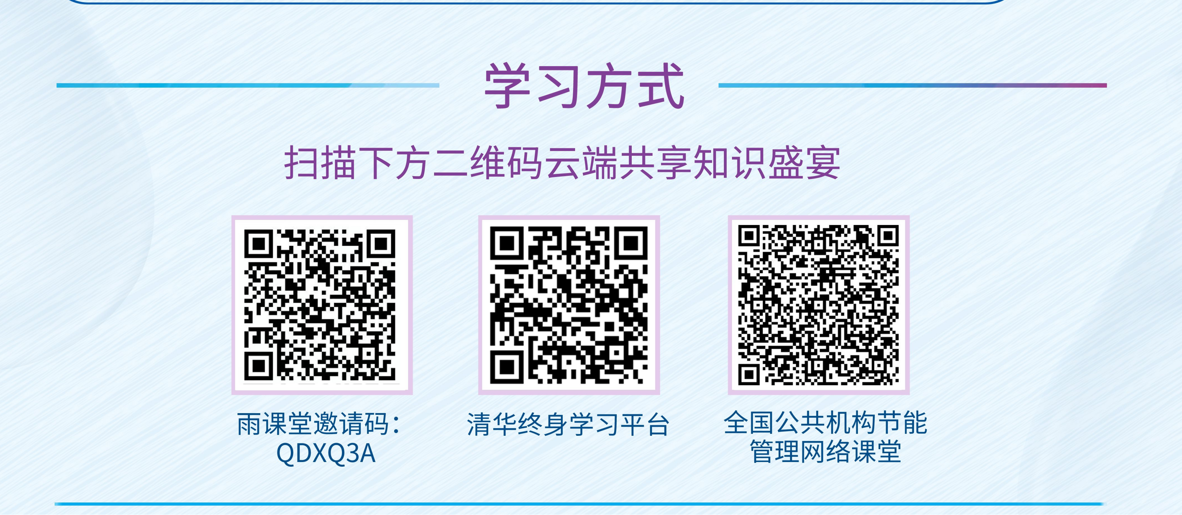 收看地址:1.通过“雨课堂”收看;2.通过清华终身学习平台收看;3.通过全国公共机构节能管理网络课堂收看。