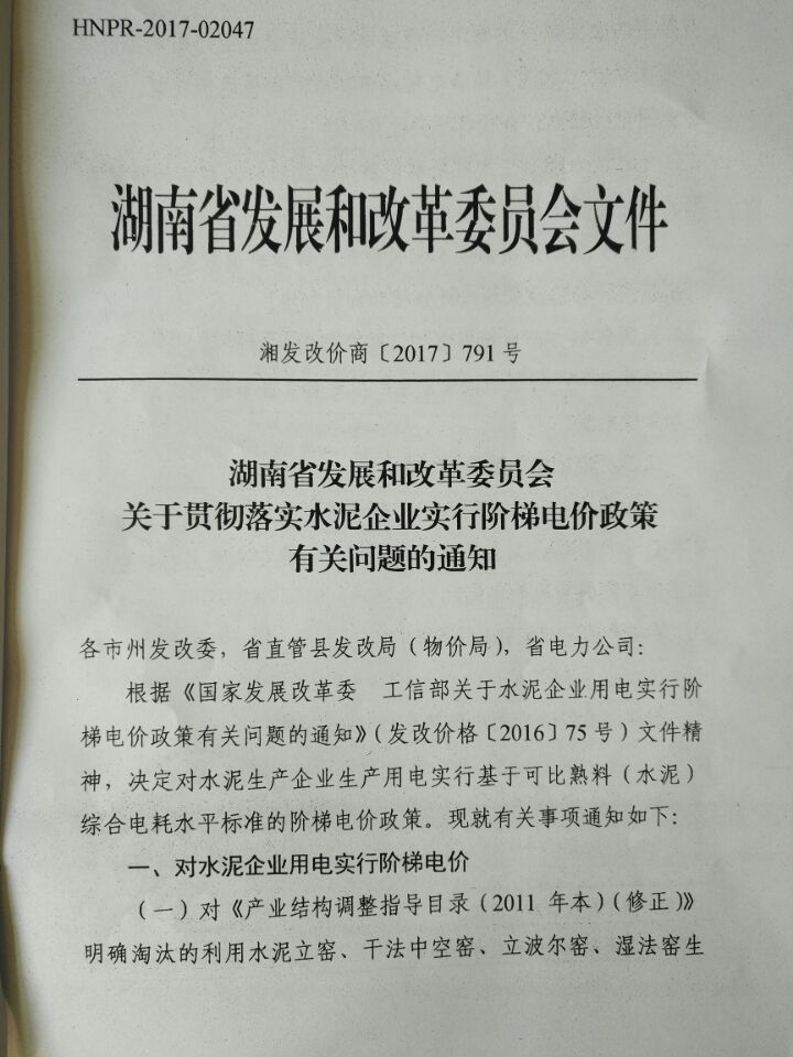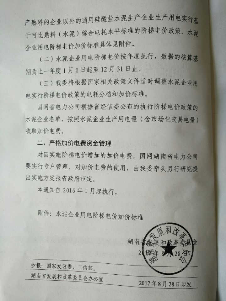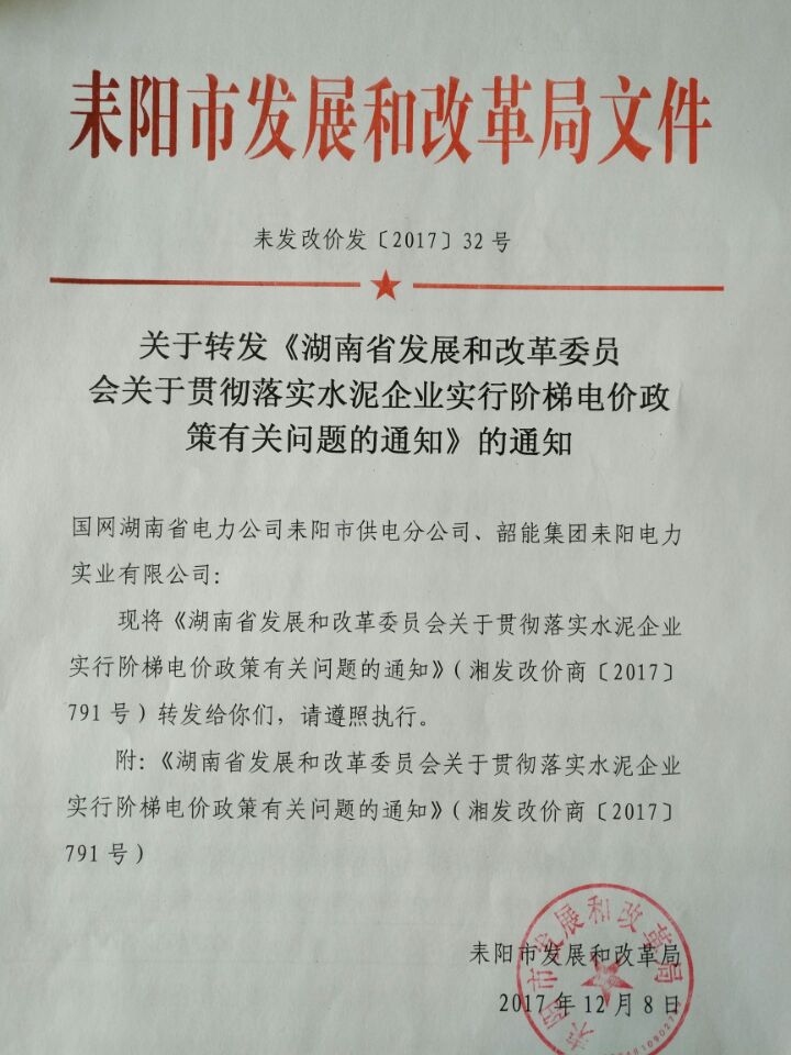 关于转发《湖南省发展和改革委员会关于贯彻落实水泥企业实行阶梯电价政策有关问题的通知》的通知