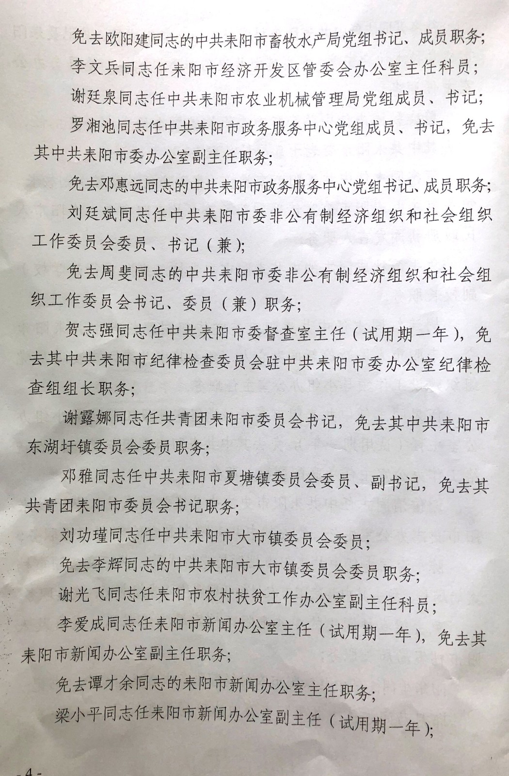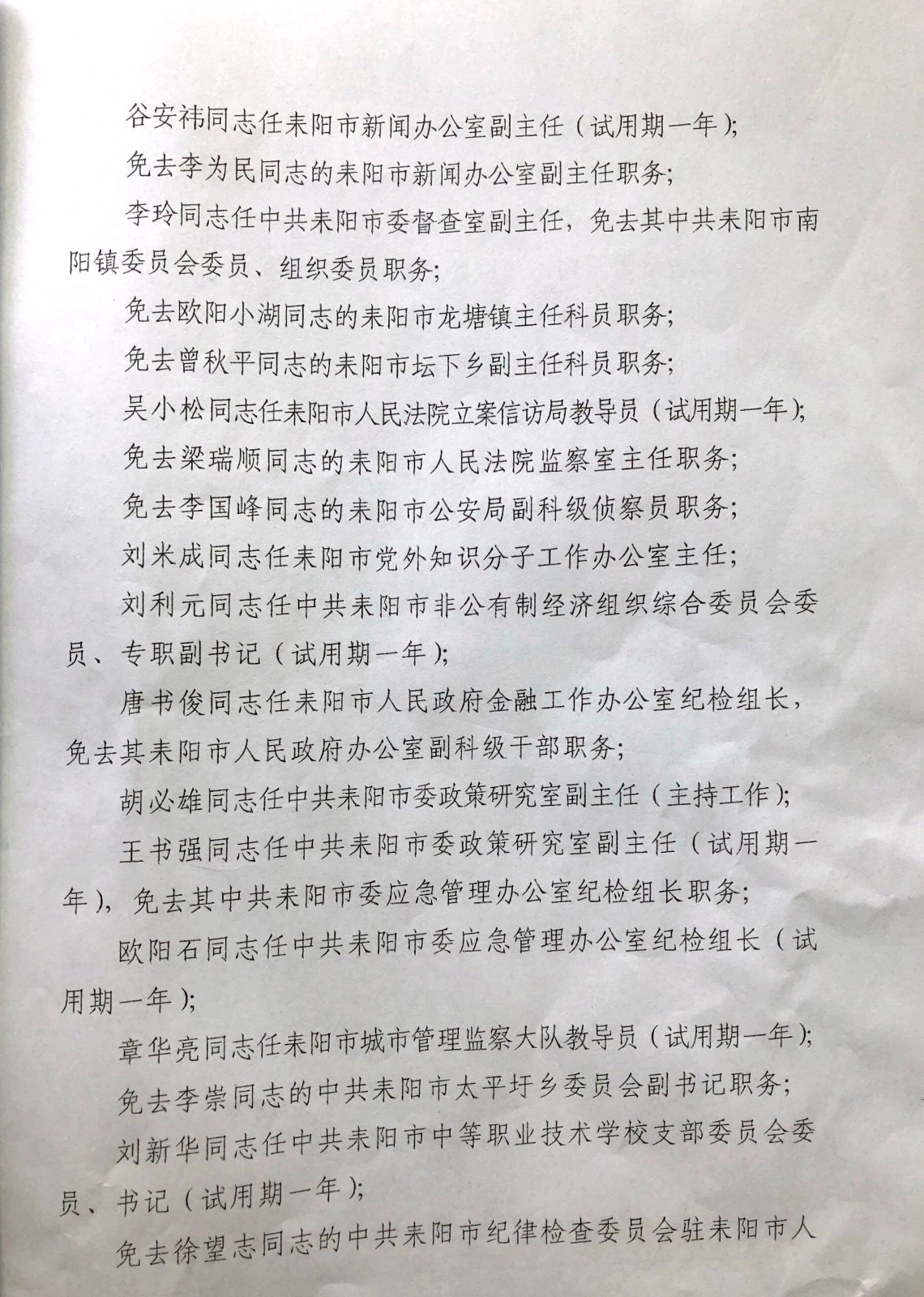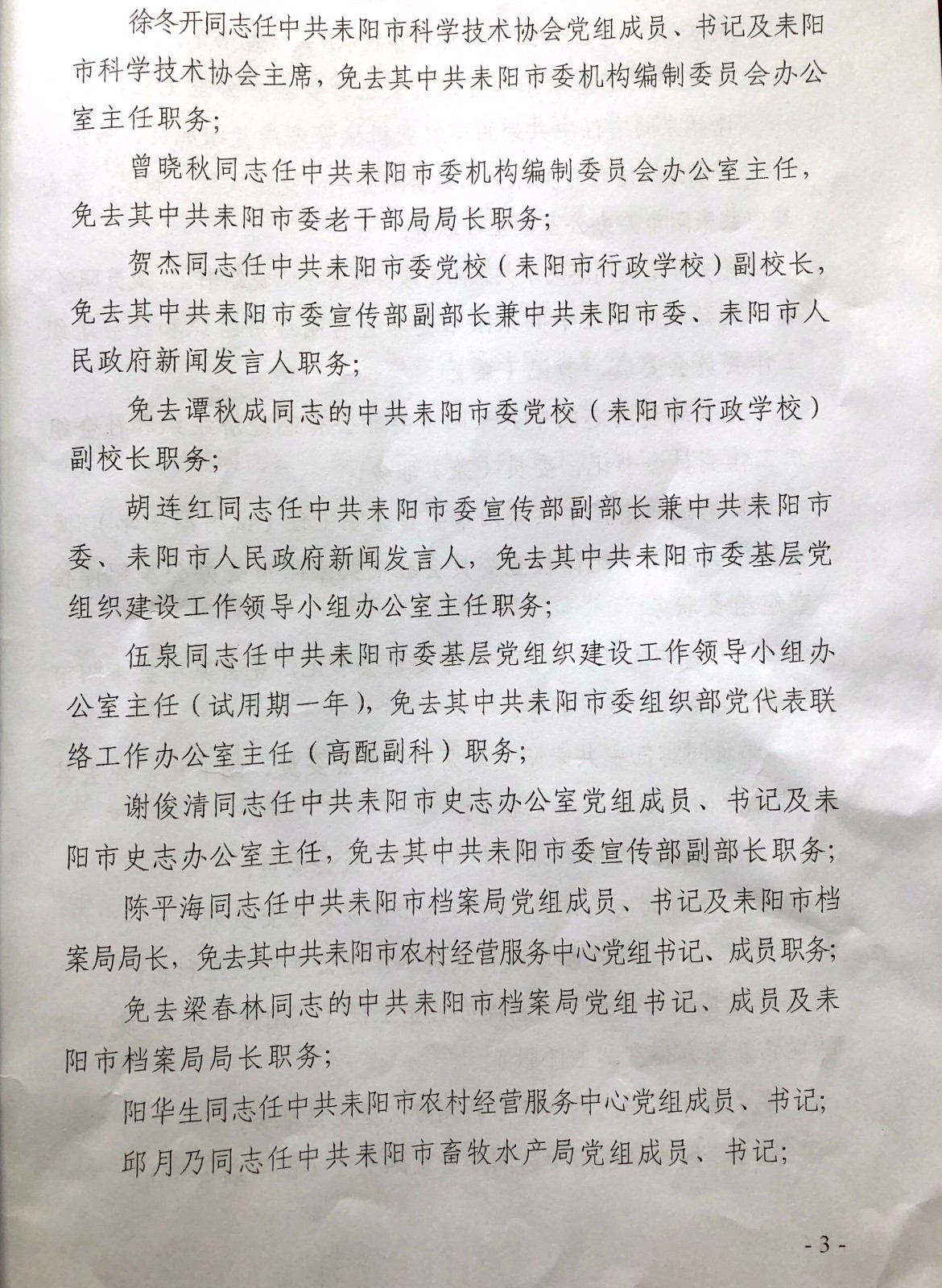 中共耒阳市委关于李志成等同志职务任免的同志