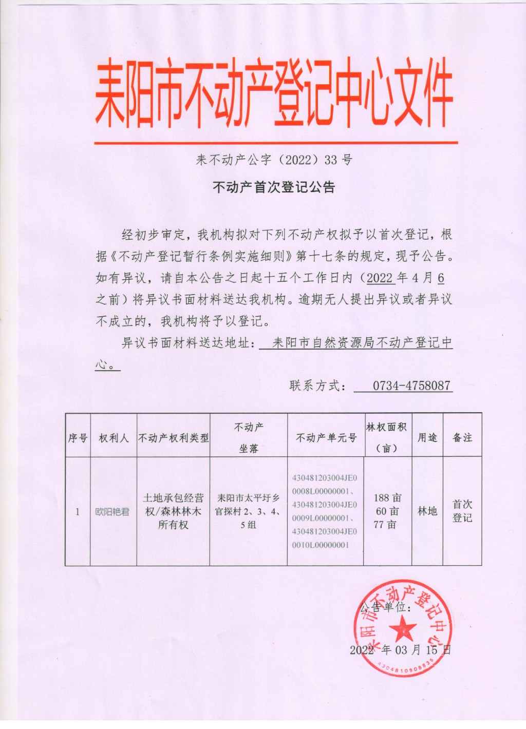 不动产首次登记公告(欧阳艳君)