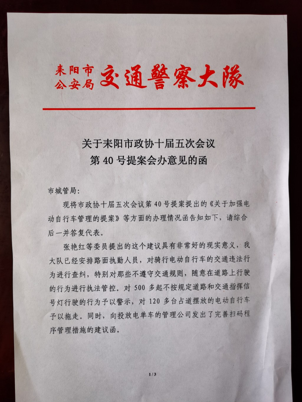 关于耒阳市政协十届五次会议第40号提案的答复