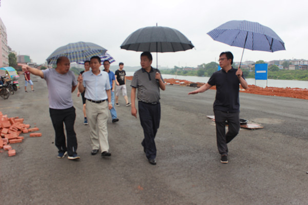 6月20日,衡阳市文体广新局局长蒋勋伟一行在耒阳市文体广新局局长李乙平的陪同下视察耒阳市省十三运会项目场馆建设工程。