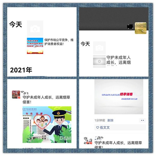 受疫情影响,两局改变传统宣传形式,采取"零接触"的方式组织开展烟草法规宣传活动,一是通过大型电子显示屏播放小视频;二是通过手机短信、朋友圈发动同事、朋友转发宣传小视频;三是组织宣传车播放宣传口号巡回宣传。四是在广场、超市等场所摆放宣传展板,让过往群众和消费者近距离观看相关法律法规和案例。五是在乡镇圩场、学校周边张贴公告及宣传标语。主要宣传烟草法规、假冒伪劣卷烟识别等知识,特别是电子烟、禁止向未成年人销售烟草制品的宣传。让广大消费者、未成年人感受到职能部门的关心和保护,从视觉上听觉上接受有关法律法规,在日常消费中有效维护自身权益。既严格遵守了疫情期间管控要求又达到了宣传目的。各市场监管所在辖区内设立的13个点同步开展了小型宣传活动。据统计,宣传活动共出动宣传车40台次,摆放展板8块,播放显示屏30次,张贴标语、公告300余张,通过朋友圈转发宣传视频200余条.