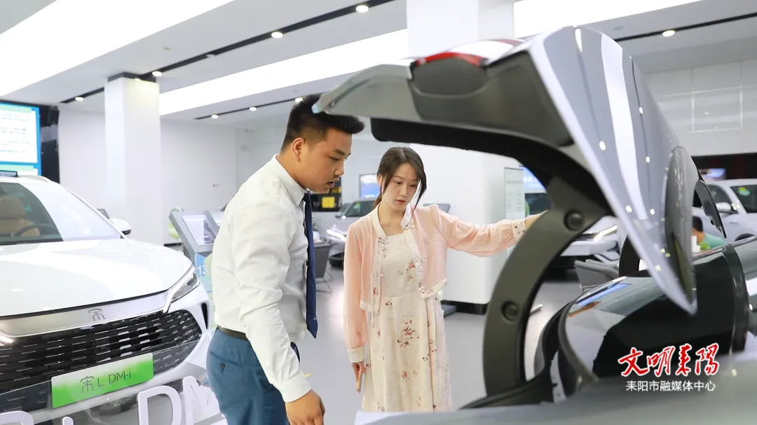 与此同时,在耒阳市的比亚迪车企销售店内,"两重""两新"送解优专项行动的优惠政策吸引了大量市民前来咨询。市民徐丹丹通过以旧换新政策,顺利获得了高达2万元的购车补贴,还享受了店内的额外优惠。