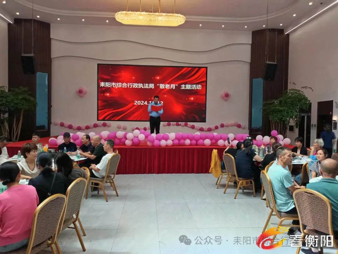 秋来又重阳,情系桑榆晚。为进一步弘扬中华民族“尊老、敬老、爱老”的传统美德,增强退休老干部的集体荣誉感、归属感、幸福感,10月12日,耒阳市综合行政执法局开展“敬老月”主题活动,70余名退休老同志相聚一堂,共庆美好佳节。