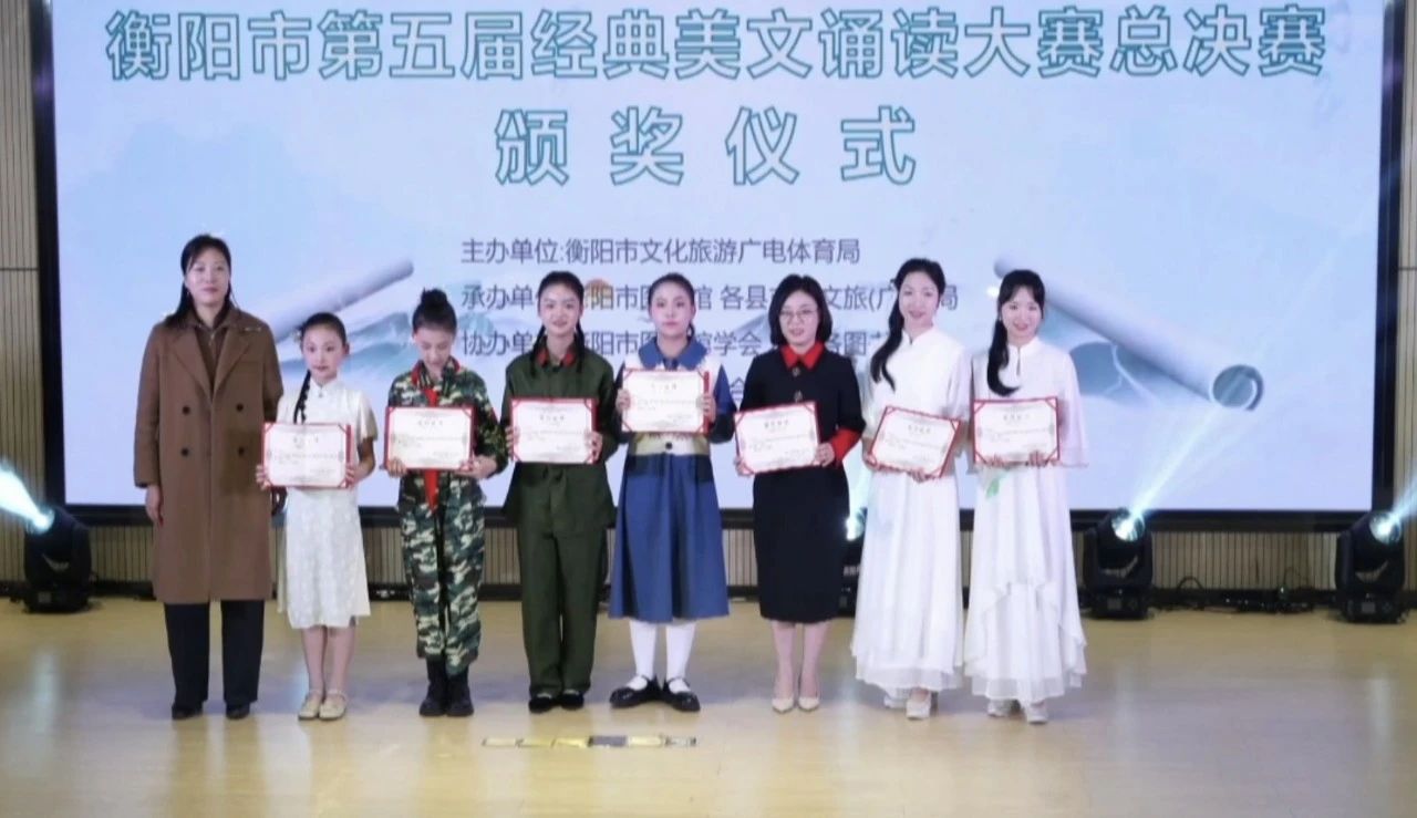 3月15日,由衡阳市文化旅游广电体育局主办、衡阳市图书馆、各县市区文旅(广)体局承办的"寿比南山 雁鸣衡阳"衡阳市第五届经典美文诵读大赛总决赛在衡阳市图书馆多功能报告厅圆满落幕。耒阳市图书馆4个作品斩获多项荣誉,展现了耒阳学子深厚的文化底蕴与语言表达能力。