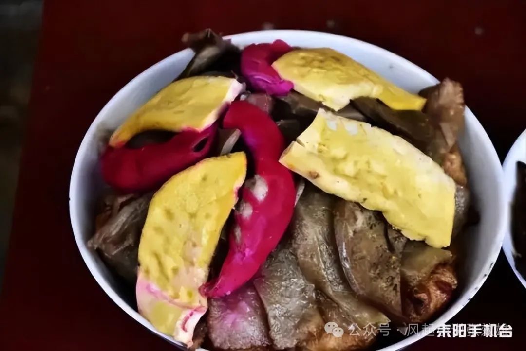 红喜宴会按正规宴席标准预备几桌,送给新妇的娘家和接亲娘,称为"嫁菜"。宴席上吃剩的菜,客人不能带走,最后全部倒在一起分给邻里,叫"贺菜"。白事宴不会将整桌的菜送人的,开宴前,主家的管事会发给每人一匹荷叶,来客一般只喝点汤水和配菜,席间推举一人将上席的团子肉、坨坨鱼、豆腐方等菜,逐一分给大家用荷叶打包带走,统称"戒菜"。在耒阳,赴白事宴的代名词就成了"打包礼"。这些风俗,如今乡间办大事时还流行,餐馆里就不会有了。