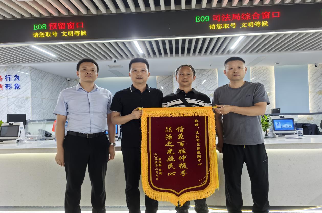 (通讯员:张跃 谢妍)近日,耒阳市法律援助中心迎来暖心一幕。受援人梁某专程送来"情系百姓伸援手 法治之光照民心"的锦旗,感谢法援中心在其家庭遭遇重大变故时给予的温暖帮助。