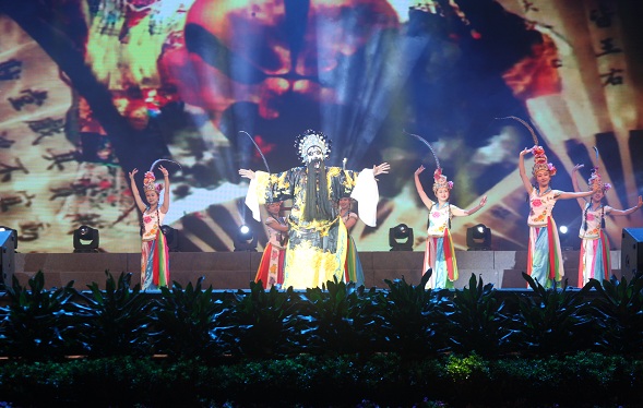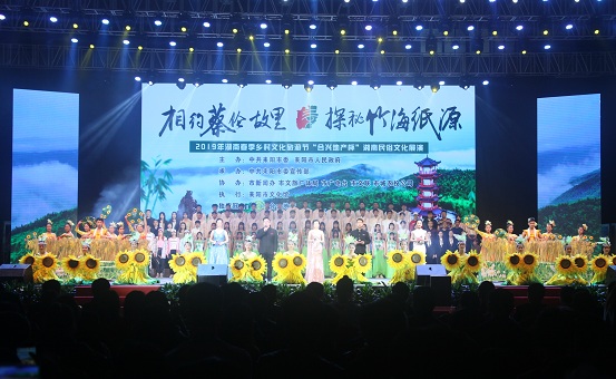 4月11日晚,2019年湖南春季乡村文化旅游节“合兴地产杯”湘南民俗文化展演在全民健身运动中心精彩上演。衡阳市委常委、耒阳市委书记罗琼,衡阳市文化旅游广电体育局党委书记、局长王郦君,衡阳市文化旅游广电体育局党委副书记、副局长易鸿斌,衡阳市文化旅游广电体育局副局长李欣,我市领导邱小兵、黎家能、张东辉、刘华文、李云、刘洋、黄含茂、阳耀、曾阳生、刘菊香、熊鹰、姜凯、郭兴中等与现场四千余名观众一起观赏了这场美轮美奂的视觉盛宴。