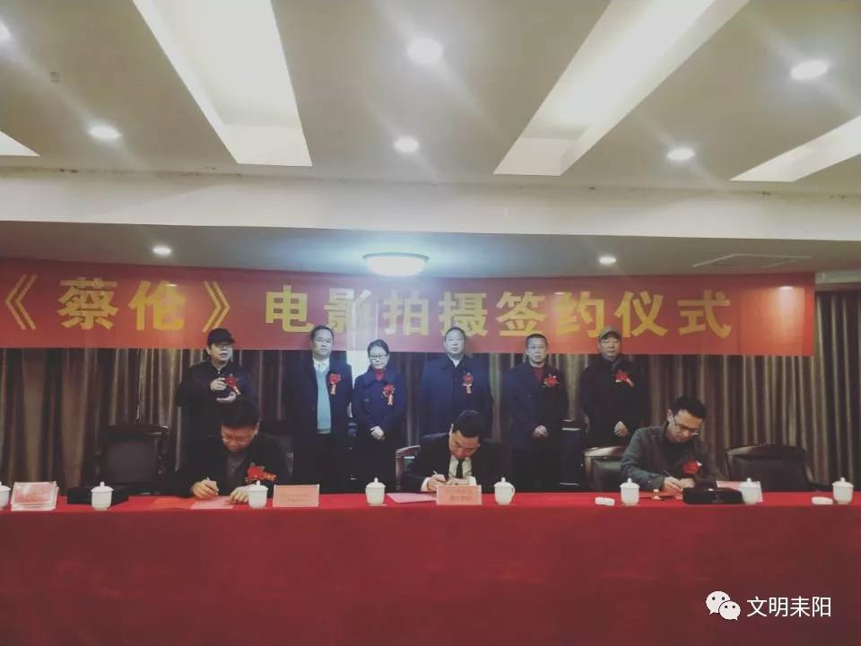 12月27日上午,耒阳市举行电影《蔡伦》的拍摄签约仪式。市领导刘洋、曹晓江、郭兴中、罗志宏,以及投资方云强文化发展公司、拍摄方剧奇(北京)影视文化传媒有限公司代表等人出席签约仪式。市人大常委会副主任曹晓江主持签约仪式。