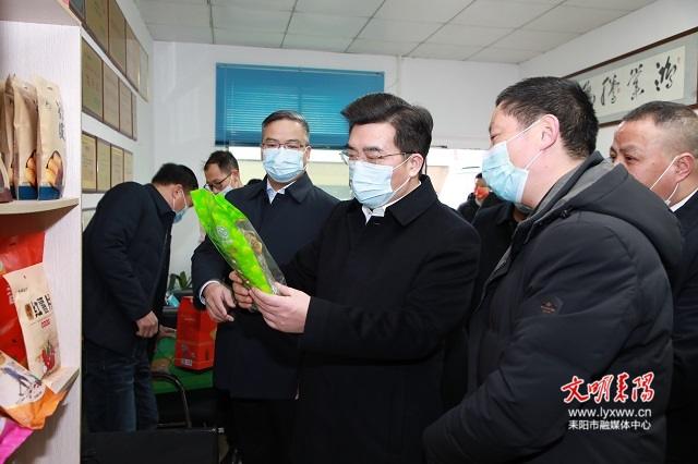 湖南心海圆农业发展股份有限公司是衡阳市农业产业化龙头企业,专注于红薯制品的加工与销售。赖馨正一行仔细了解企业发展历程、市场销售等情况,参观带货直播间、包装发货车间、生产车间,会商原材料本地供应方案。他鼓励企业负责人要把行业标准牢牢掌握在自己手中,持续巩固行业地位,研究线上线下市场规律和消费者心理,加大研发力度,深挖主打产品并加强营销推广,不断提高企业知名度与美誉度,在耒阳建设水果红薯种植基地,发展订单农业,带动群众增收,实现三产融合发展,用小产品闯出大天地。