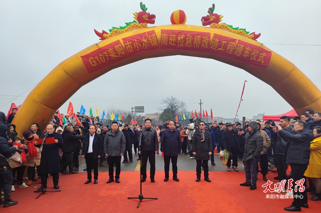 2月5日下午,G107国道耒阳市小水铺、南旺桥危桥改造工程顺利完工,二座崭新的桥梁交付使用,道路恢复正常通行。市委常委、常务副市长尹建恒出席仪式并宣布正式通车。市领导李连飞、伍检告、张海清出席通车仪式。