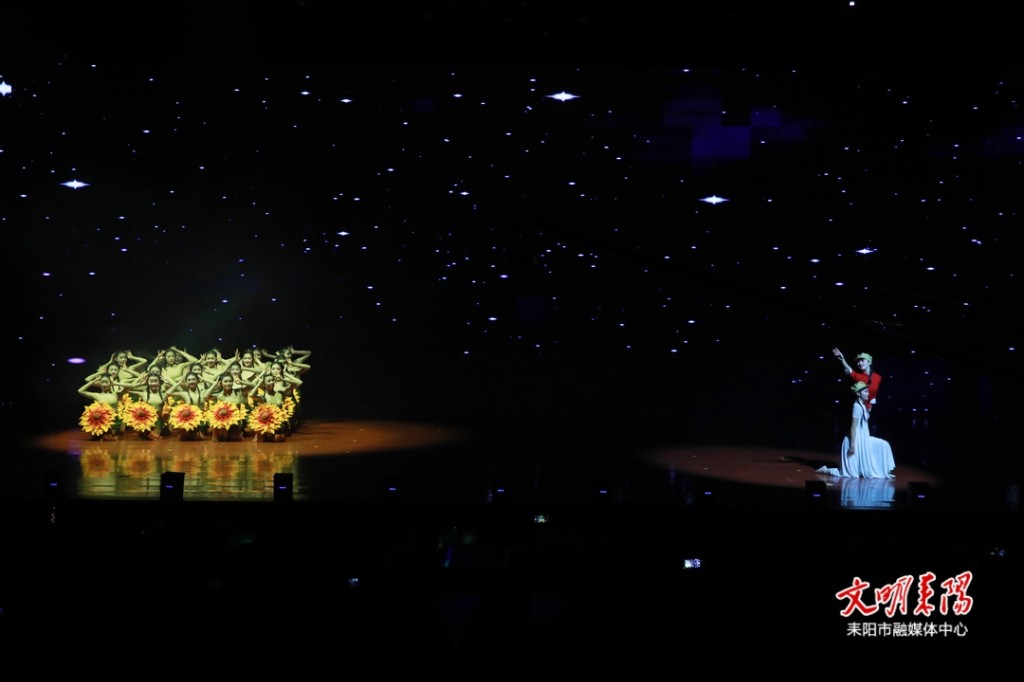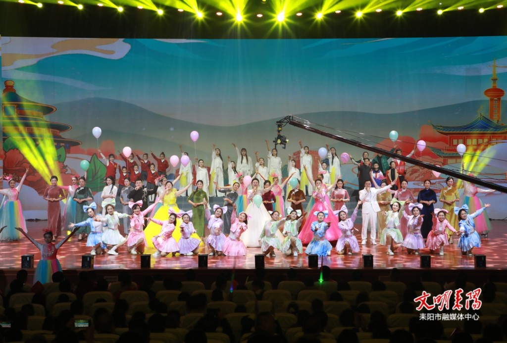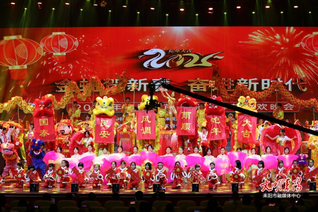 夜幕下的文体会议中心灯火璀璨、人头攒动,市民朋友们欢聚一堂,载歌载舞,共迎新春,城市“年味”升腾,喜迎新春过年气氛值“拉满”。热闹欢腾的开场节目《金蛇狂舞新耒阳》拉开了整场晚会的帷幕,随后来自全市15个单位选送的17个精彩节目轮番上演,涵盖歌舞、朗诵、情景表演、合唱等类型,既有恢宏场景,也有细腻柔情表达,时而热烈激昂,时而温柔婉约,动人的演绎带着耒阳气息、飘着浓浓的年味,生动展现了耒阳近年来在群众文化、非遗传承上取得的骄人成绩和全市人民昂扬向上、奋发有为的精神风貌,寄托了大家对美好生活的向往和辞旧迎新的美好祝愿。