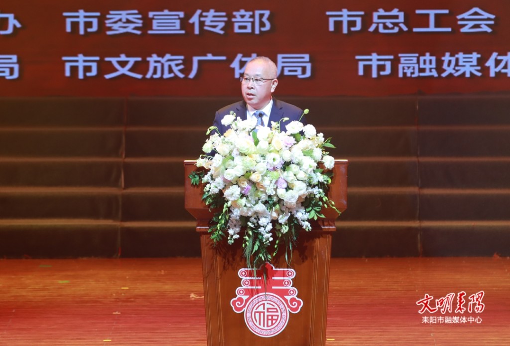 1月22日晚,主题为“金蛇贺新春·奋进新时代”的2025年耒阳市首届职工春节联欢晚会在市文体会议中心绚丽上演。市委副书记、市长尹立鑫致新年贺词。