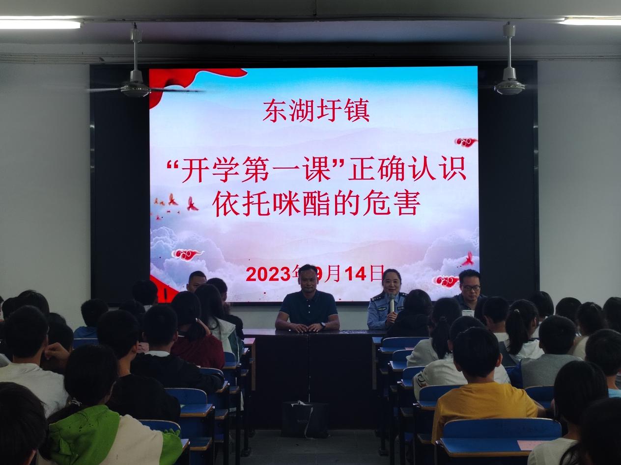 暑气散秋意浓,又到一年开学季!为进一步提升学生对毒品危害的认识,9月14日,东湖圩镇禁毒办联合镇派出所、司法所在耒阳七中开展"开学第一课:正确认识依托咪酯的危害"禁毒宣传课活动。