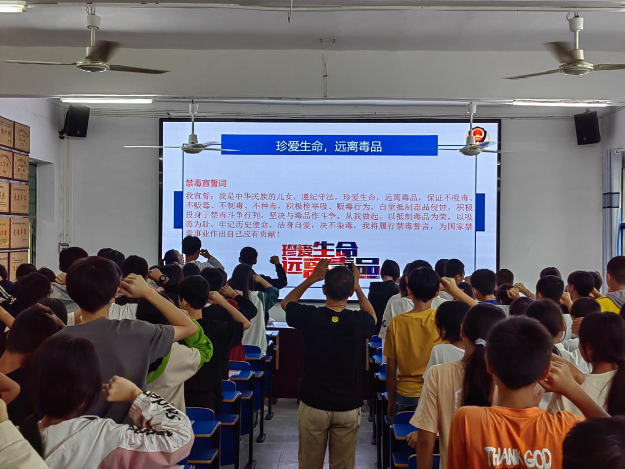 课后,学校师生签订了禁毒承诺书,东湖圩镇禁毒办负责人带领同学们进行禁毒宣誓,坚决远离毒品,远离"烟粉",珍爱生命,坚决与毒品作斗争。