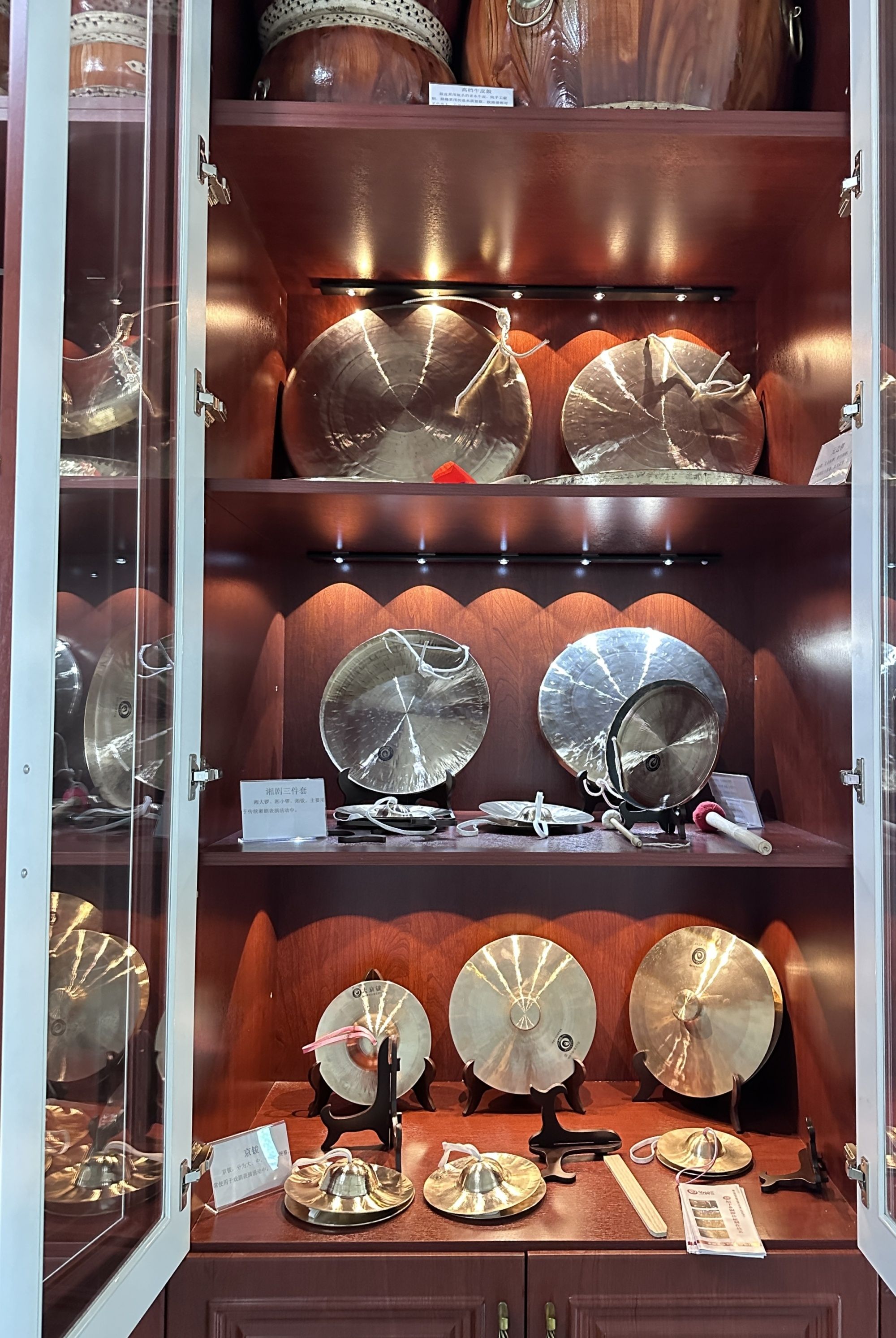 罗冬元和儿子罗建文一心经营锣鼓厂,他们的背后,还有十几个兄弟姊妹和亲戚,他们都曾经在铜锣厂学习制作,如今已经在全国十几个省份的省会开了乐器店,锣鼓厂为不同剧种不同民族定制锣鼓,销往全国各地,各省份的戏班乐团里,都留下了"坛下非遗"的字样。