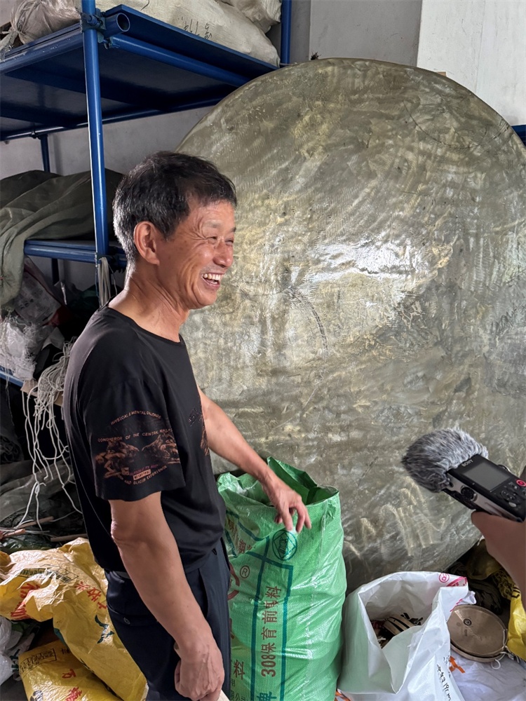 罗冬元是坛下乡锣鼓厂厂长,今年70岁,刚刚入选国家级非遗代表性传承人推荐名单,是传承祖辈铜锣制作手艺的第七代传人。从盘子大的小锣,到两米高的大锣,这些来自不同民族不同文化的铜锣,都出自他的锣鼓厂。