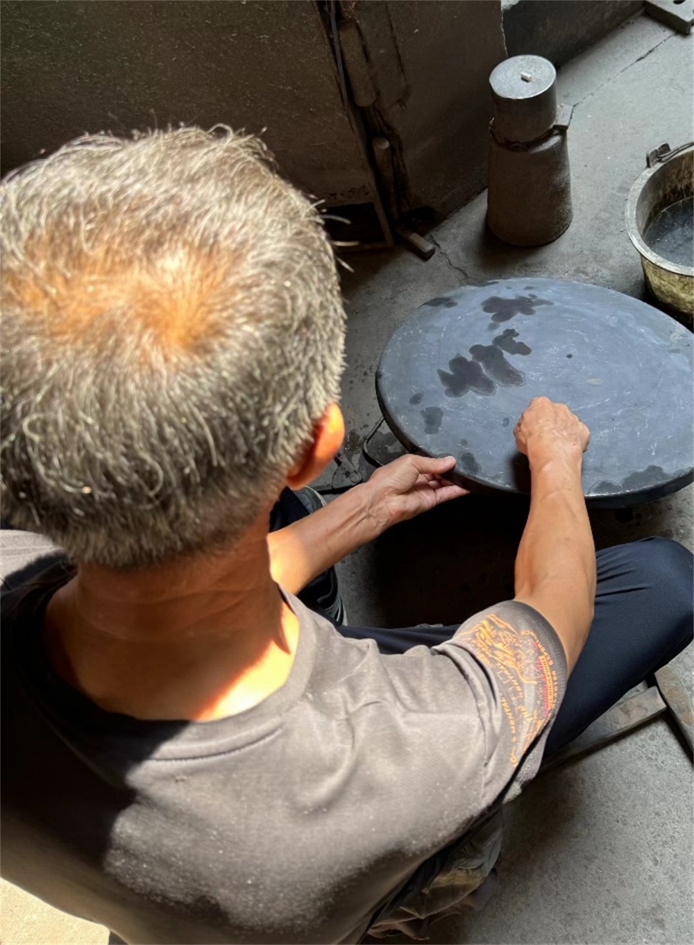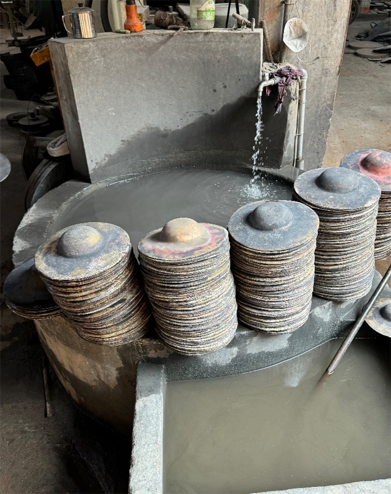 每种铜锣的大小、厚薄、形状都完全不同,烧热后要立刻淬火,淬火的时机是决定铜锣硬度和韧度的关键,如果烧得太红就容易碎裂,如果烧得不够则硬度不足,铜锣就会打不响。淬火的操作完全凭师傅的感觉、眼睛和经验。