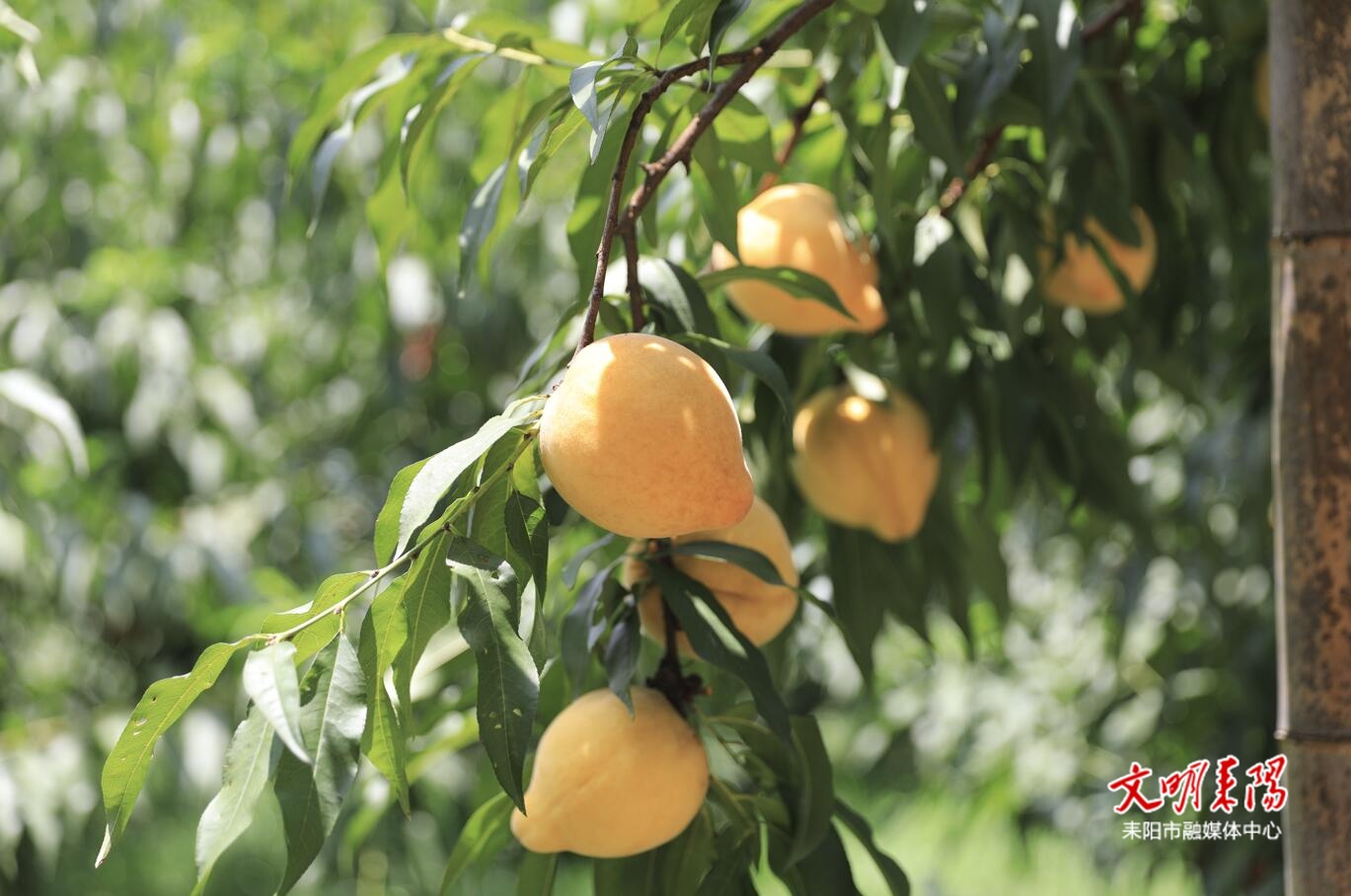 桃林依山而建,依水而栽。位于上游的大义镇陶洲村黄桃基地分布于14组,是“十里桃园”的重要组成部分。这里拥有连片的沿河砂质土壤,夏季昼夜温差大、光照充足,是“炎陵黄桃”的优质生长区。果农坚持采用有机肥进行施种管理,黄桃不仅个头大、口感好,还生态健康,吃着更放心,深受游客喜爱。目前,这片区黄桃种植面积已达近百亩,正值采摘高峰,预计采摘期可持续20天。游客可从对岸的大河滩喷泉景区乘坐渡船进园,沿田埂走进果林,边采边尝,乐在“桃”中。