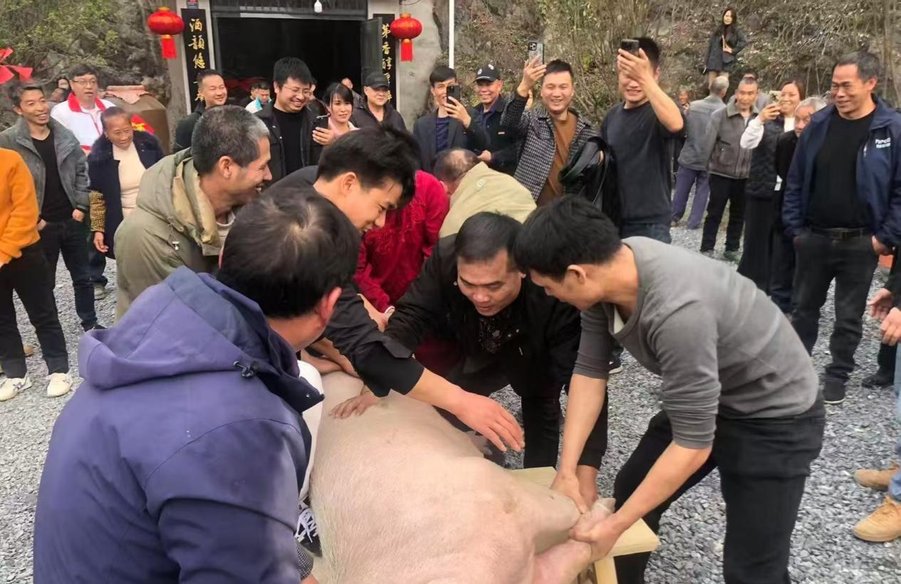 余庆街道栗梓村首办杀猪宴迎新春