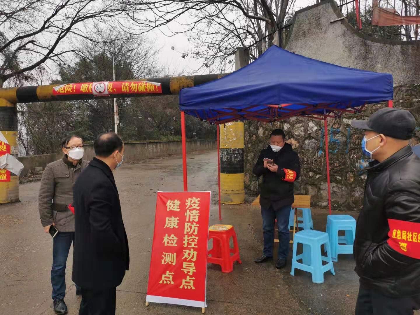 负责参与社区疫情防控任务的是机关第一党支部和机关第二党支部共46名党员干部,由党组书记李森同志任第一书记、局长郑德任同志任第一副书记,分别联系第一支部和第二支部。副局长陈景明任第一组组长、彭皆辉任第一组指导员,总工程师姚洪武任第二组组长、谢伟任第二组指导员,疫情防控工作在2日清晨再次召开誓师动员后全面迅速展开。其中派出10名党员参与5个路卡值守任务,同社区担负值守任务的同志一道按照要求当好“值守员”。派出 30名党员分成8个小组,深入社区17个自然组和1个明里坳村庄开展入户摸排,按照逐组逐户逐人要求做好信息登记。经对社区438户2200多人的摸排,发现共有7人从湖北返耒和5人高铁途经武汉回耒。其中5人于1月19日从湖北黄冈自驾返耒,1人于1月21日从湖北黄石自驾返耒,1人于1月18日从武汉高铁返耒,其他5人于1月19日前高铁途经武汉返耒。目前这些人体温监测正常,身体均无异常。局领导与社区干部对整个社区进行全面走访,并对各小组入户摸排情况及时进行检查指导,其中郑德任局长、李森书记与社区支书刘小军同志一起对鹿岐峰景点进行了巡查,对鹿峰寺欲在农历正月十五举办的佛事进行了成功劝阻,消除了疫情隐患。