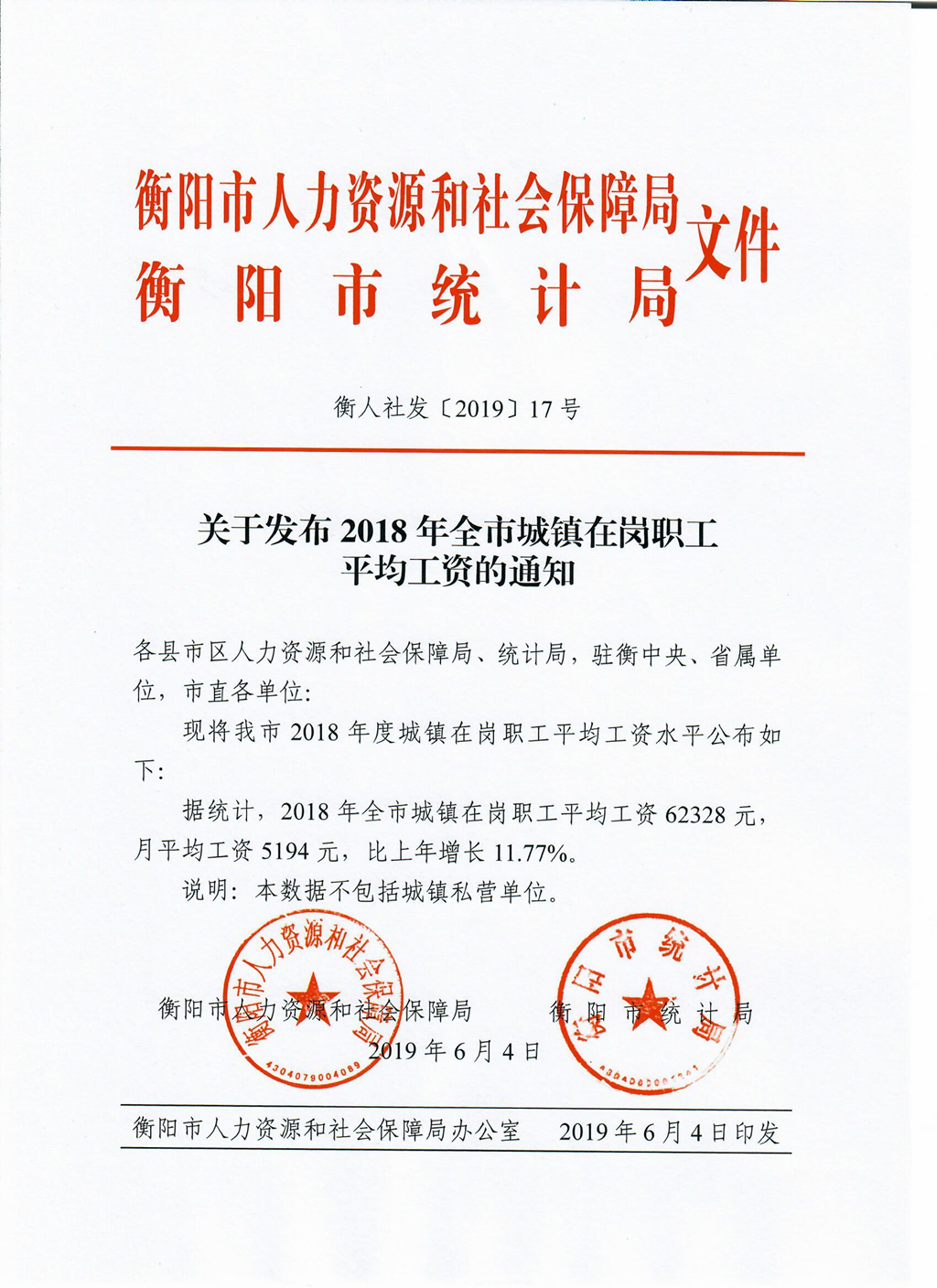 关于发布2018年全市城镇在岗职工平均工资的通知