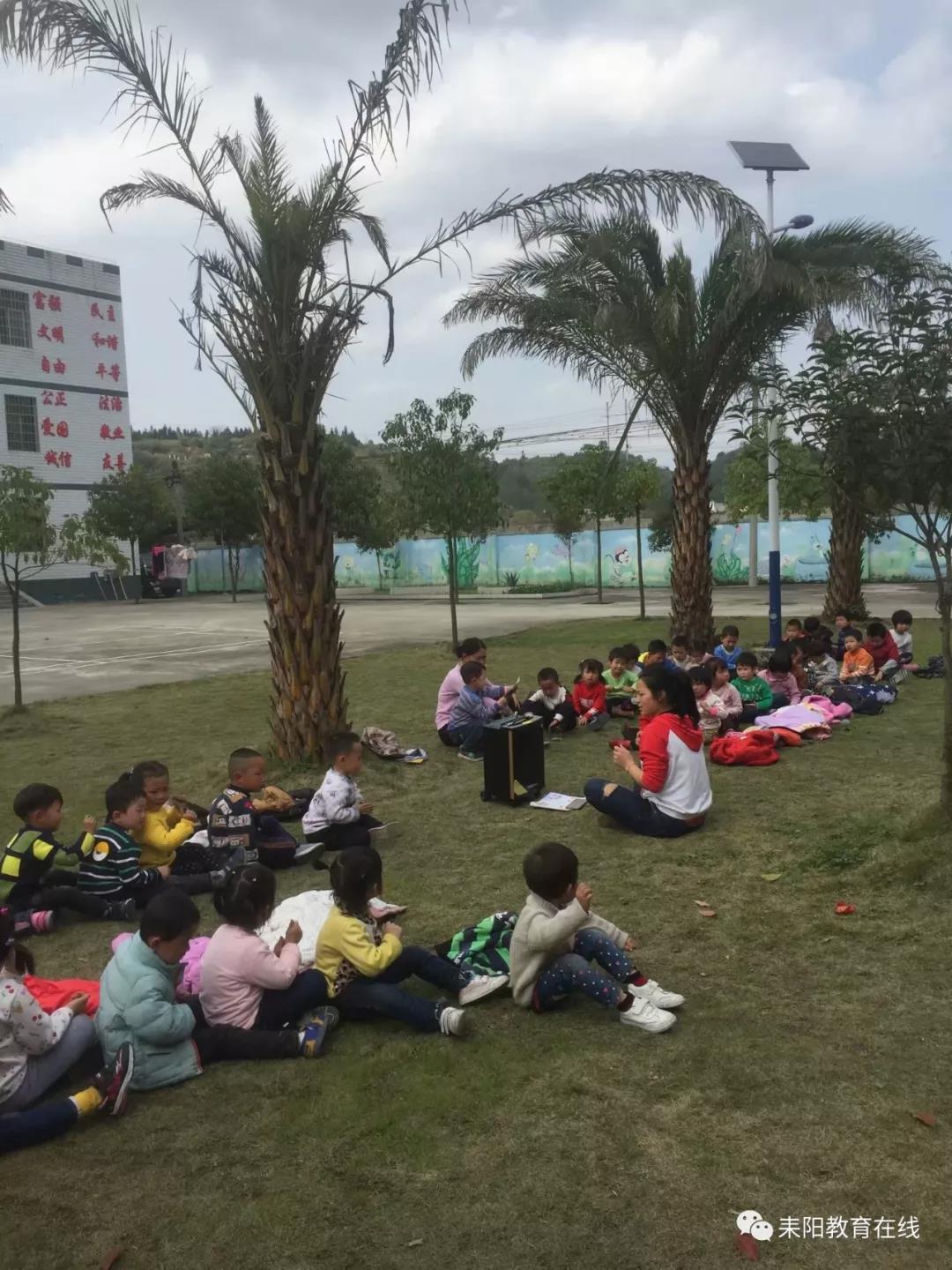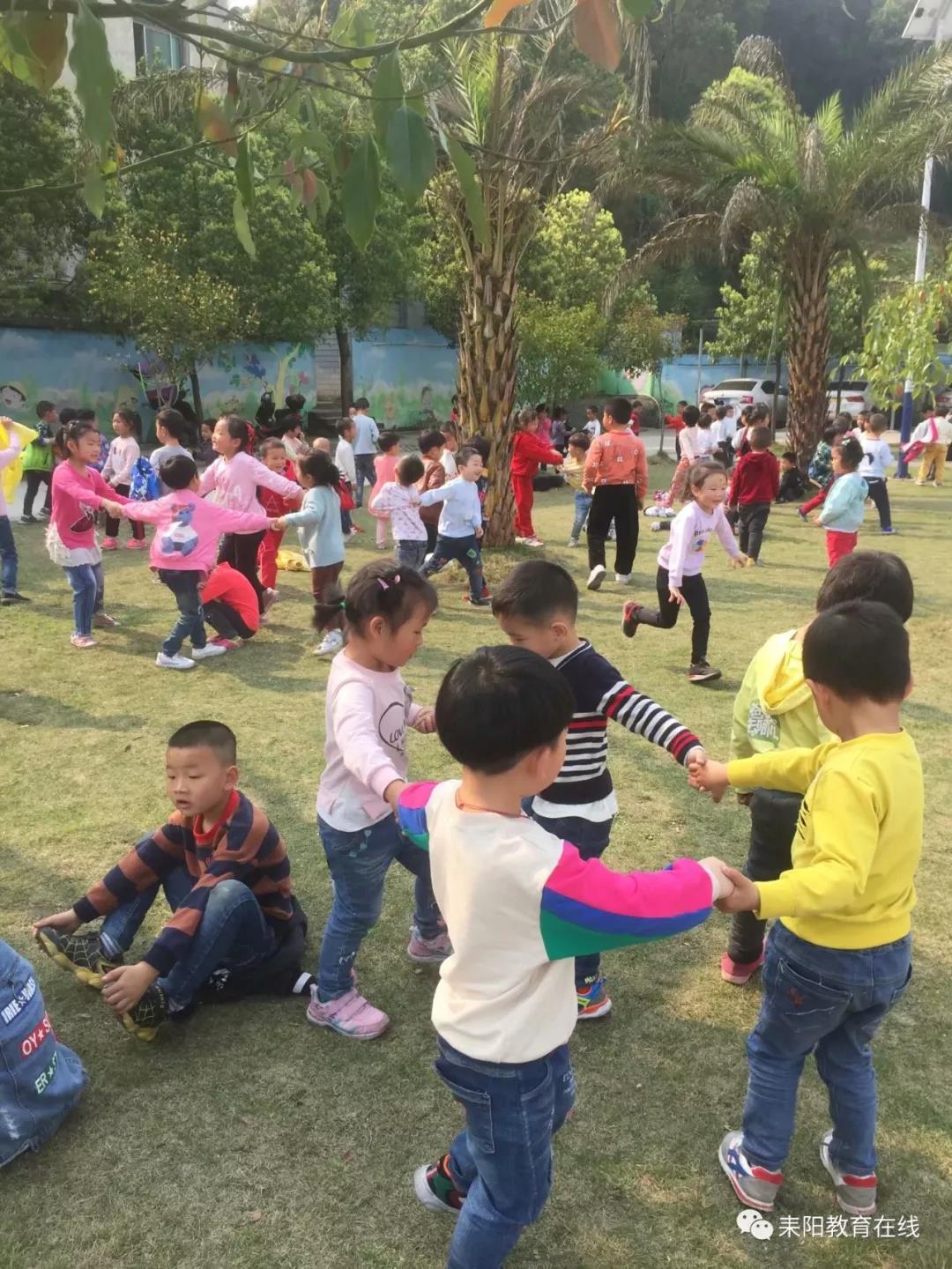 探索活动接近尾声时,孩子们在草地里的风景树下小憩、唱歌、跳舞、玩游戏,乐不可支。在依依不舍中结束了本次运动区的行走课堂。
