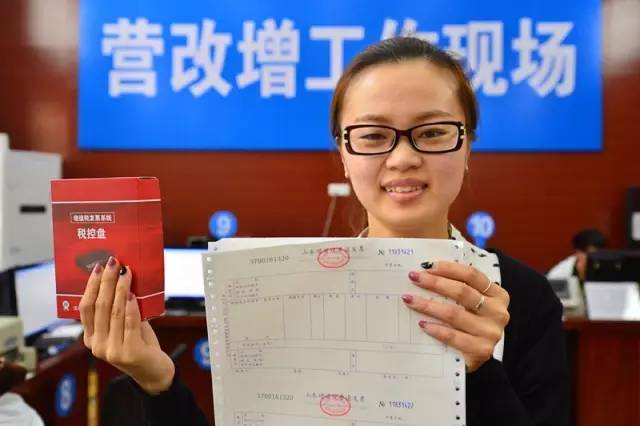 2016年4月12日,在济南市历城区国税局,纳税人展示税控设备和领用的增值税普通发票。新华社记者 郭绪雷 摄