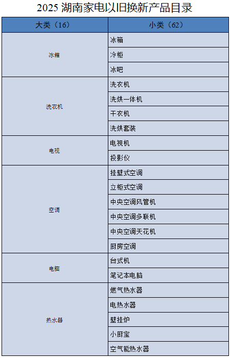 湖南2025年家电、数码和家装厨卫产品以旧换新实施细则公布
