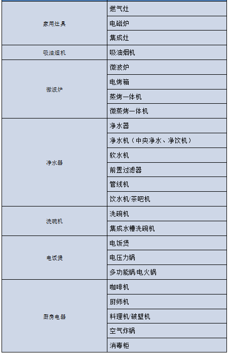 家电补贴范围为冰箱、洗衣机、电视、空调、电脑、热水器、家用灶具、吸油烟机、净水器、洗碗机、电饭煲、微波炉、厨房电器、卫浴电器、生活电器、清洁电器16类62小类家电产品(具有符合国际标准的13位商品编码,详见附件1)。